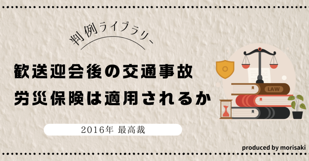 この事件は、会社の歓送迎会に参加した従業員が、終了後に中国人研修生を送った帰社途中で事故死した事案です。歓送迎会へは欠席すると伝えていたそうですが、「顔を出せるなら、出してくれないか」と言われたため、業務の合間をぬって参加しています。また、事故は社用車で起こっています。