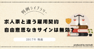 <事件のサマリー> この事件は、求人票に記載された労働条件と 後で交付された労働条件通知書の内容が異なる場合に、労働者の同意が法的に有効といえるか が争われた事案です。 労働者X(当時64歳)は、「契約期間の定めがなく」 […]